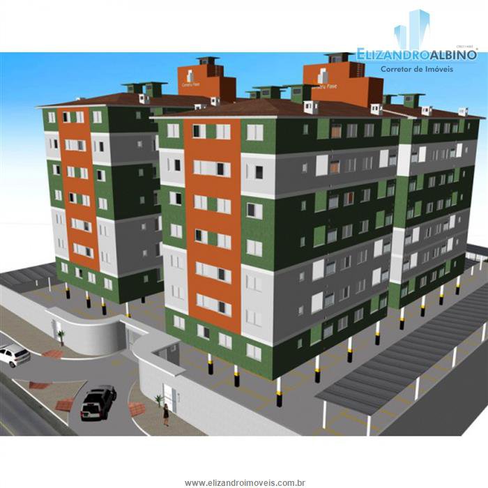 Apartamento com 55m², 02 dormitórios, sala, cozinha, bwc e garagem coberta.