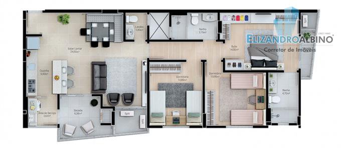 Apartamento à Venda com 3 dormitórios, sendo 1 suíte, 112 m²
