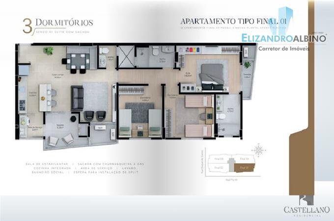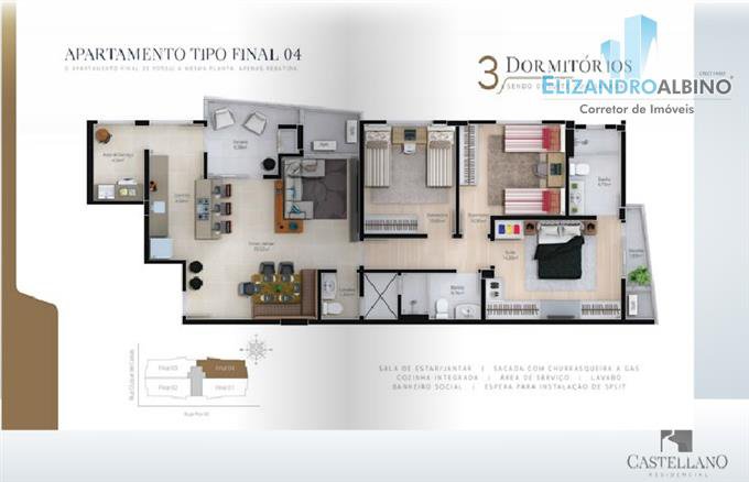 - 3 Dormitórios (01 Suite com sacada);