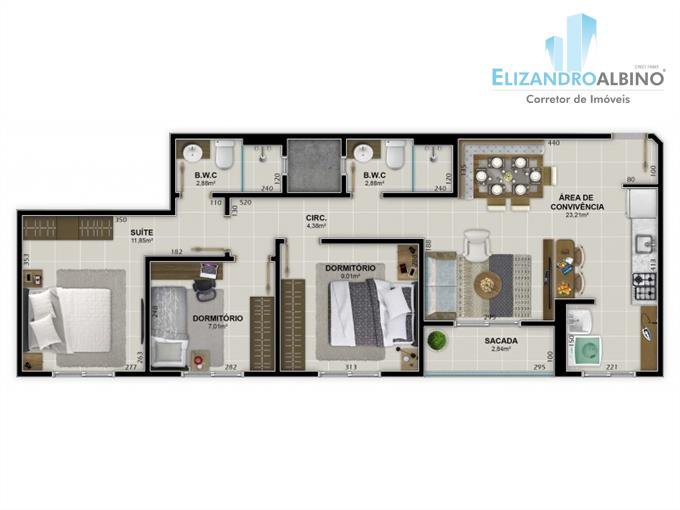 Apartamento à Venda com 2 dormitórios, sendo 1 suíte, 72 m²