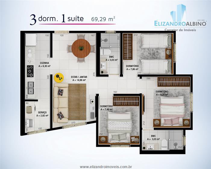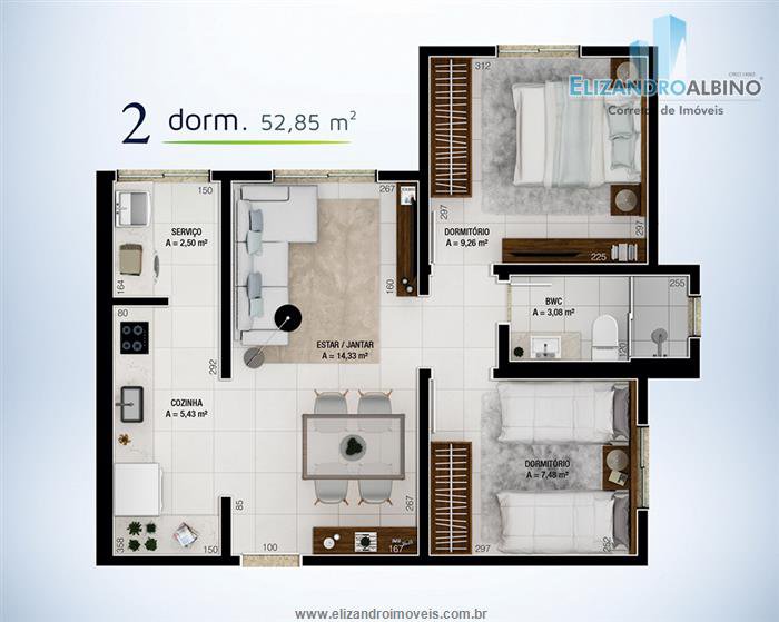 Apartamento à Venda com 2 dormitórios, 69 m²