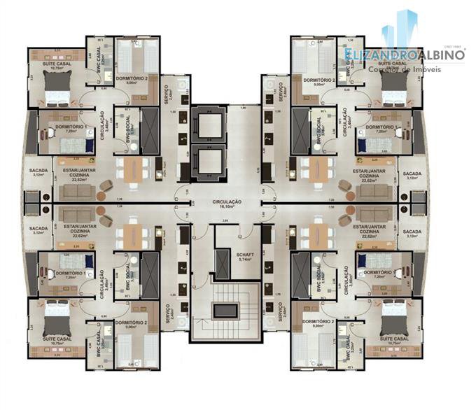 Apartamentos de 03 dormitórios, com suite e churrasqueira na sacada.