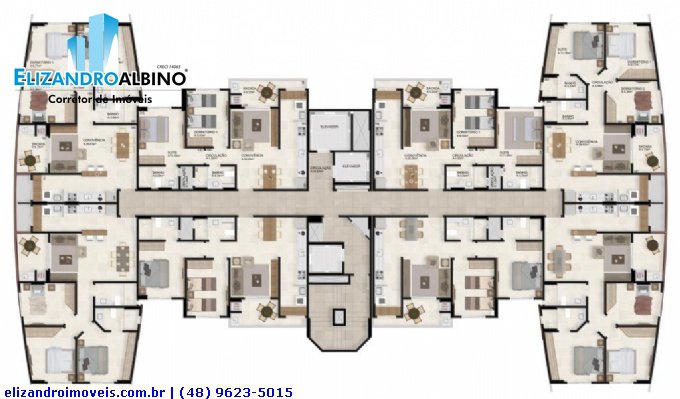 • Três elevadores por torre