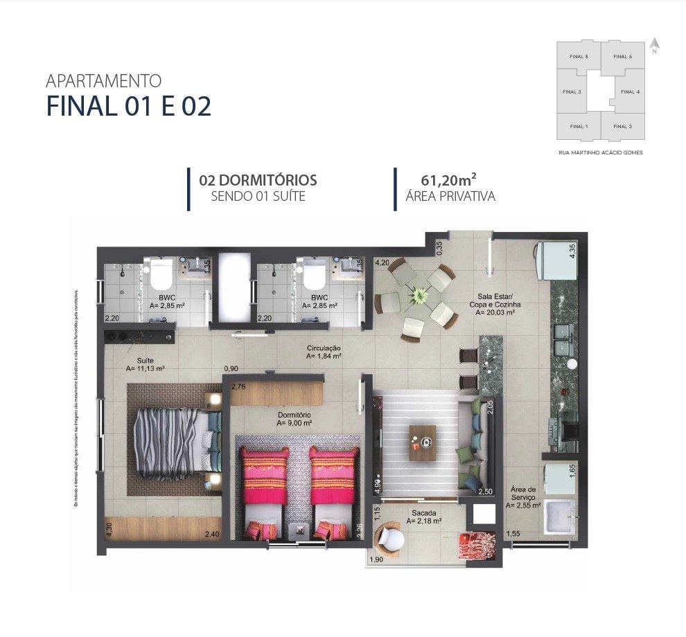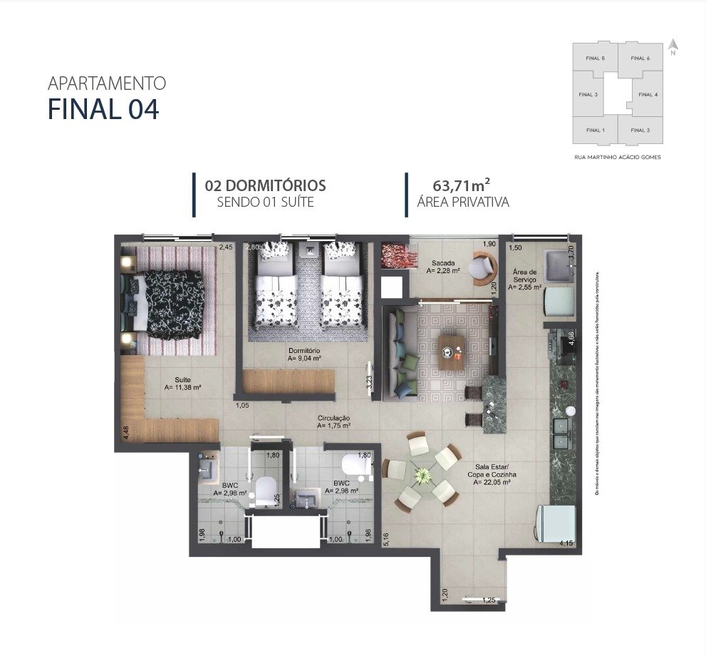 Àrea privativa do apto: 62m²
