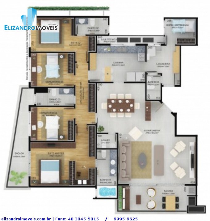 Aptos com área privativa de 251,22m² Área global de 348,39m²