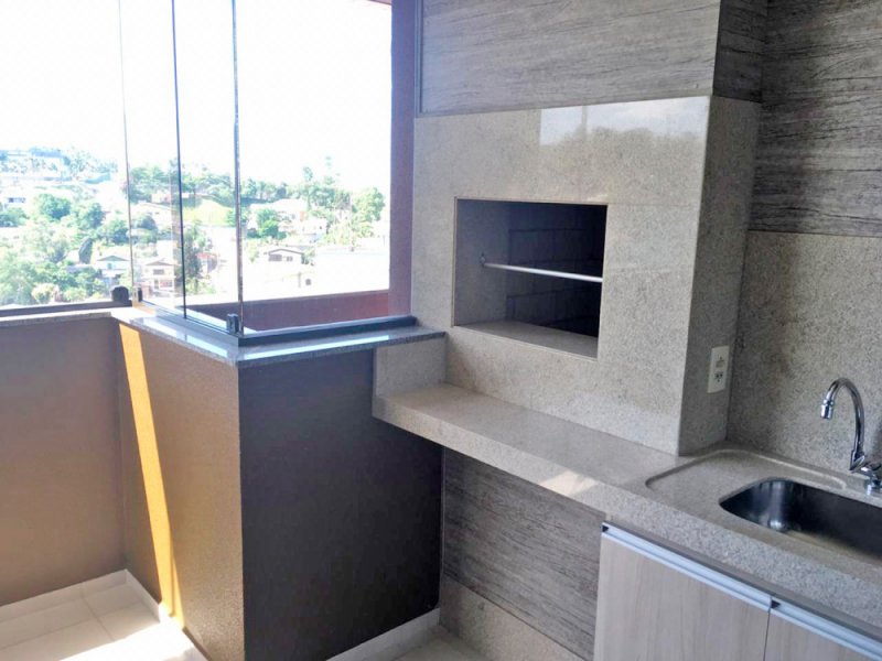 área de serviço e sacada com churrasqueira a carvão. SEMI MOBILIADO.