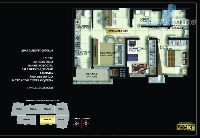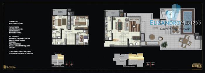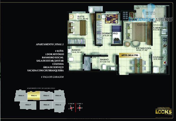 Aptos de 2 e 3 dormitórios sendo 1 suíte, cozinha, azulejada até o teto,1 banheiro social azulejada até o teto,