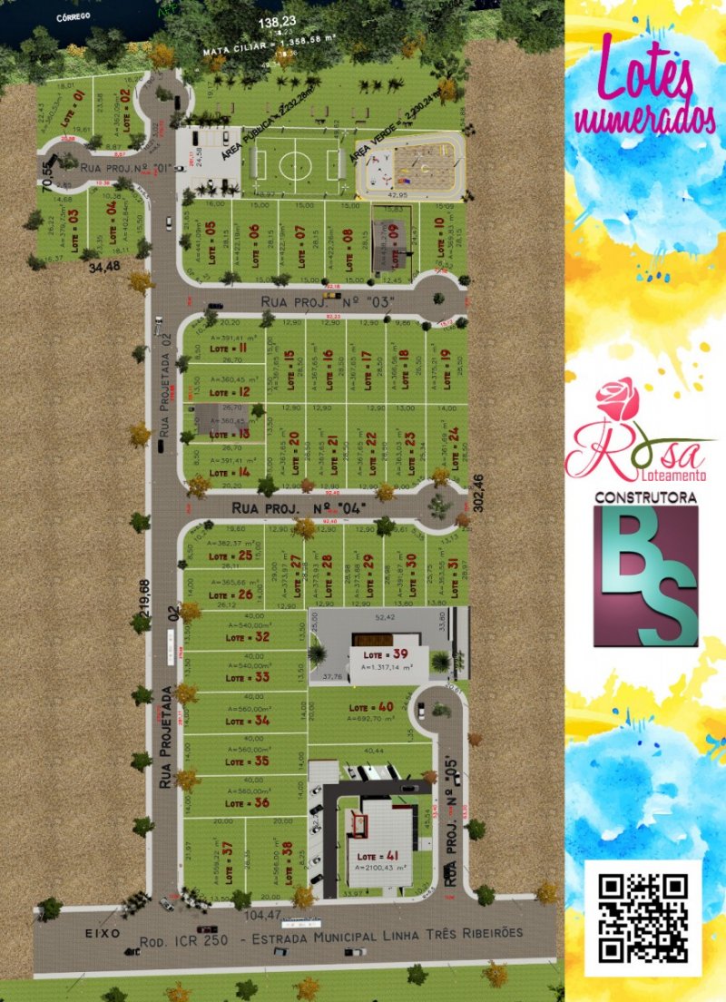 Pronto para construir ou investir, um loteamento com a infraestrutura completa, ótima localização, parcelamento direto no boleto bancário, restando poucas unidades;