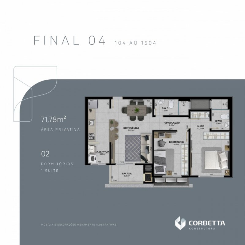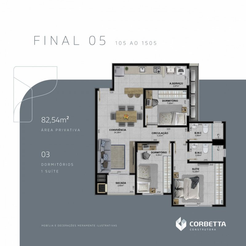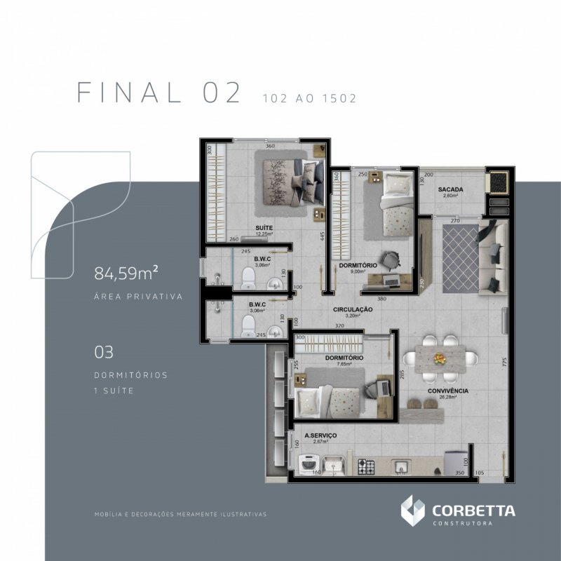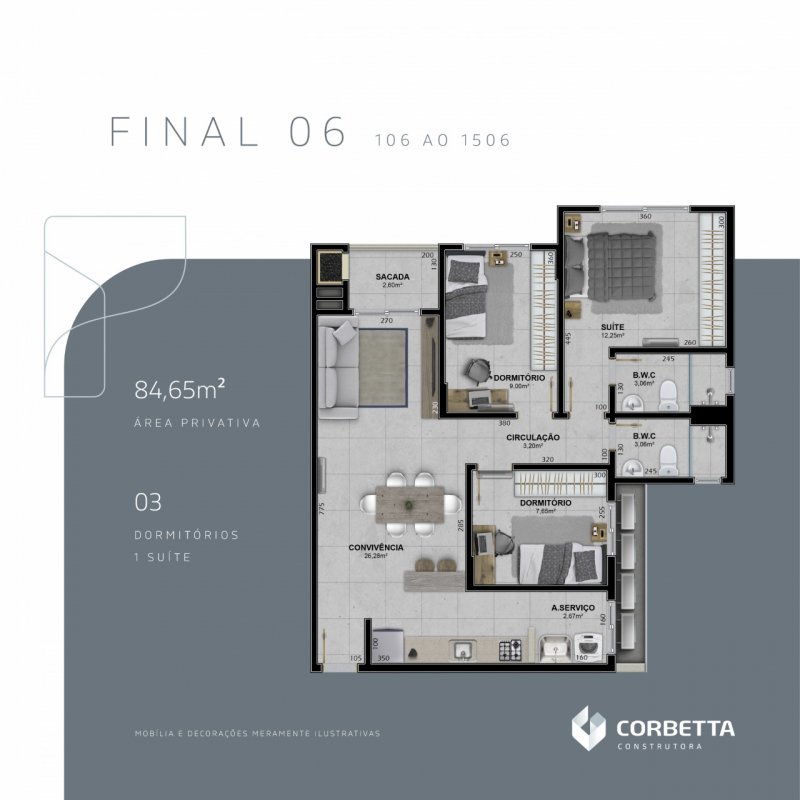 - Área Privativa: 84 m²
