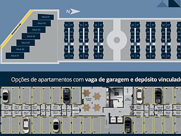 - Opção de vaga de garagem com depósito vinculado (embaixo da projeção do prédio).