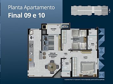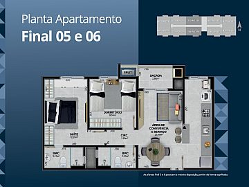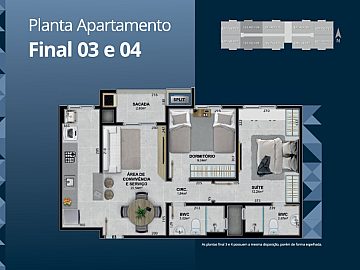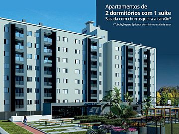 Apartamentos com 2 dormitórios com 1 suíte, sala, cozinha, sacada com churrasqueira, área de serviço e garagem.