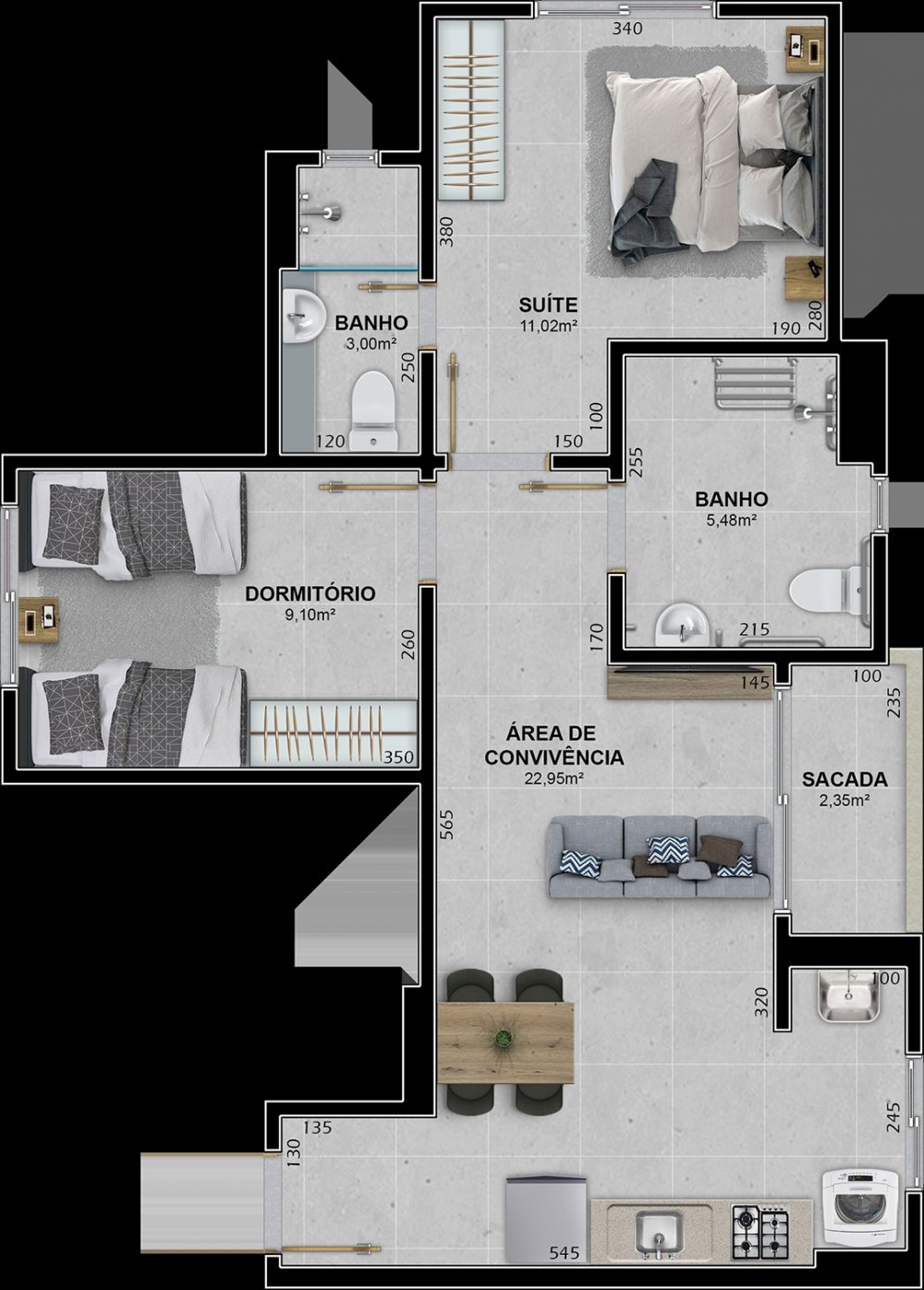 - Apartamentos de 2 dormitórios (1 suíte)