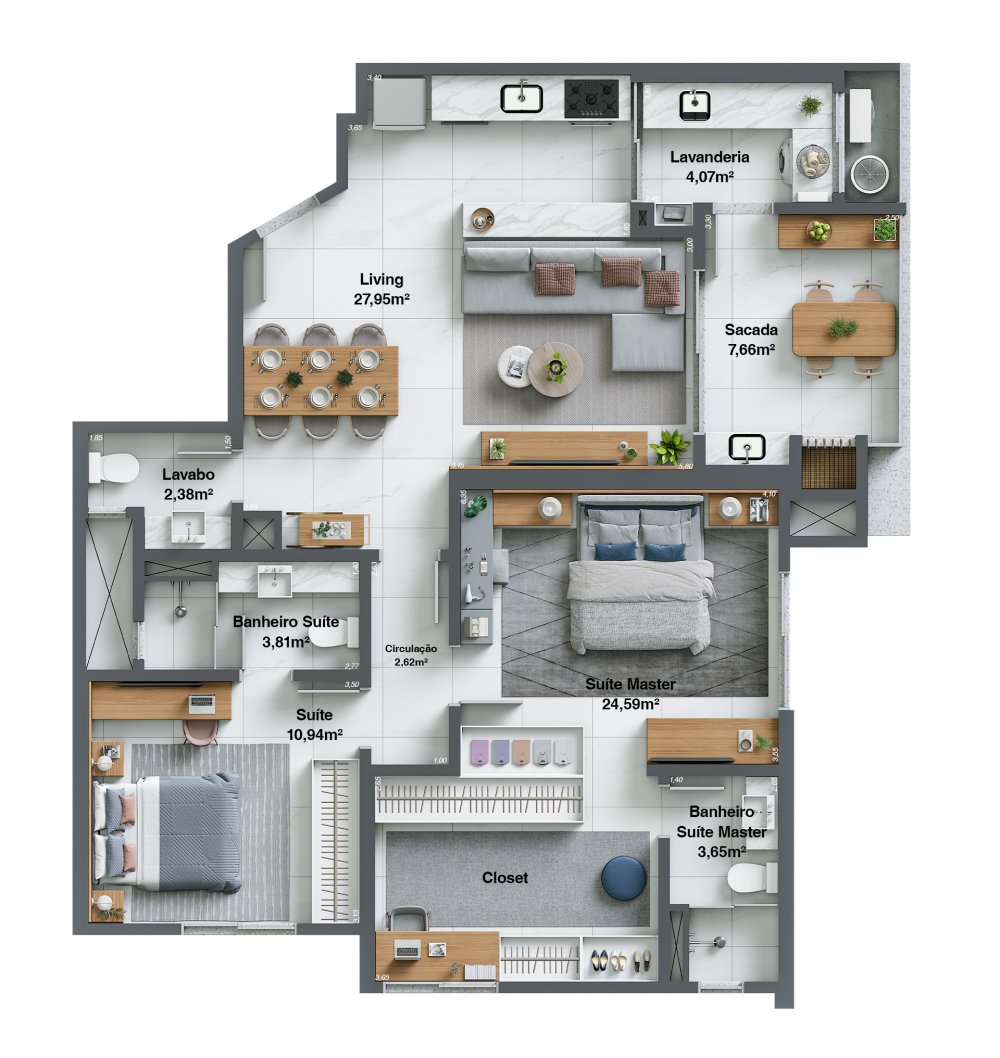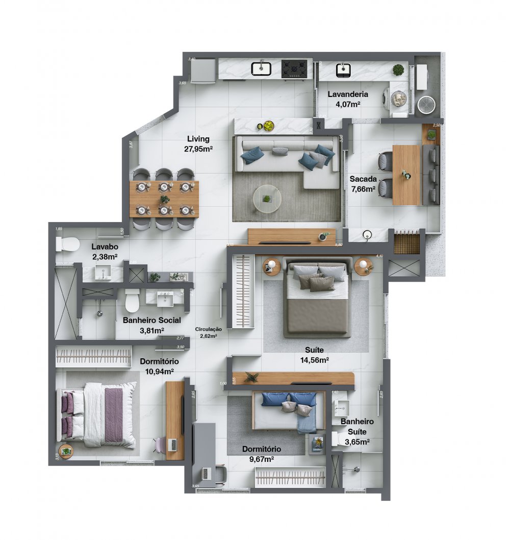 - Área Privativa: 102 m²