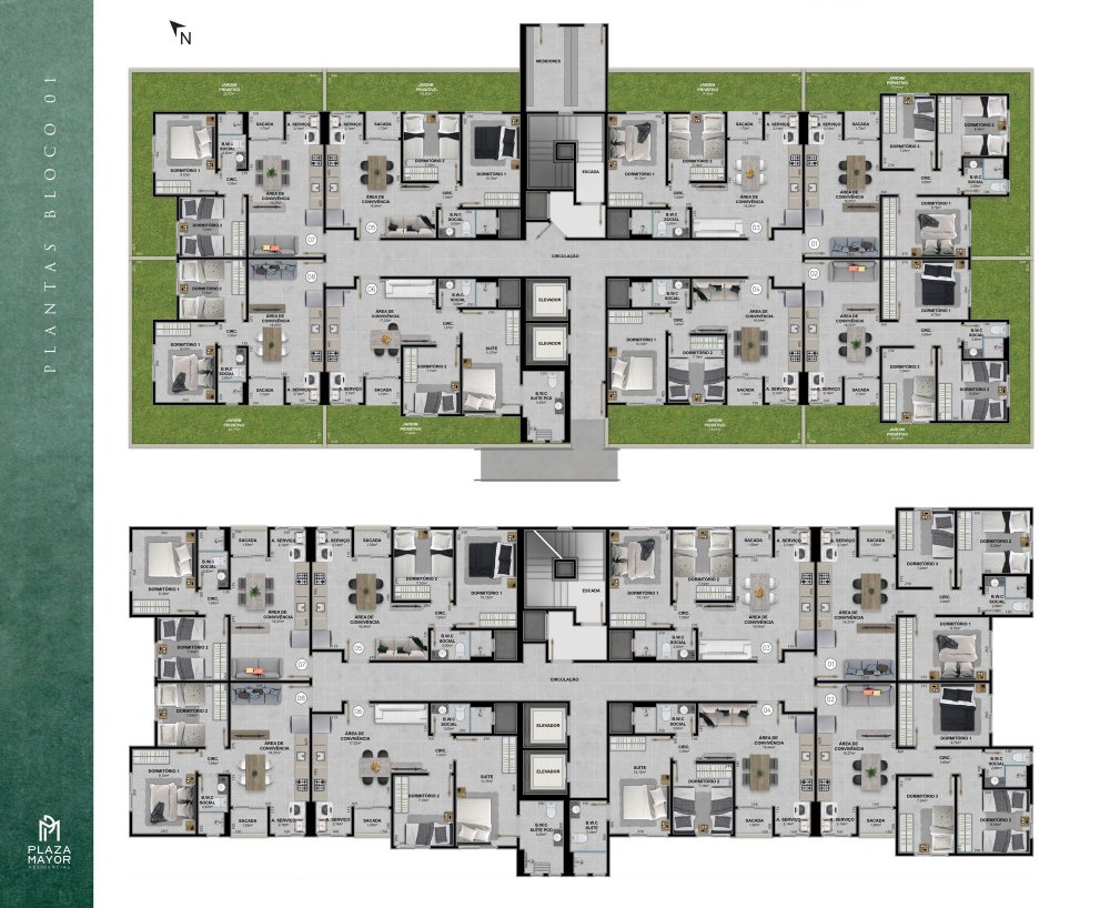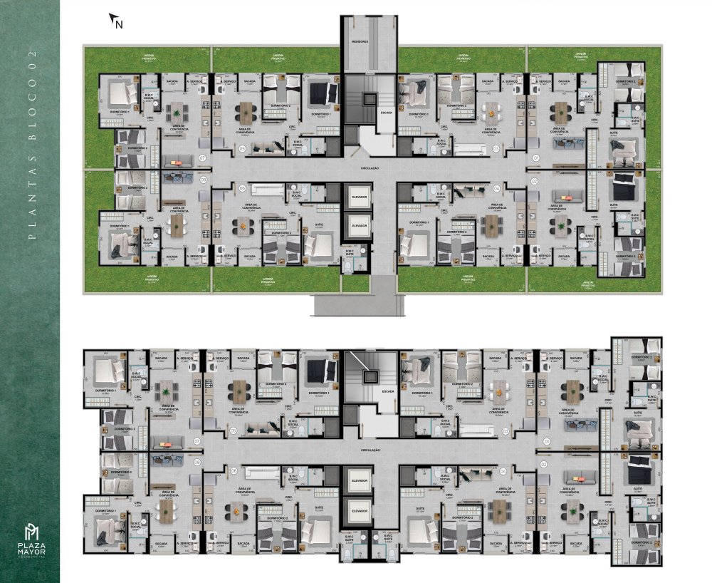 * Apartamentos de 2 domirtórios
