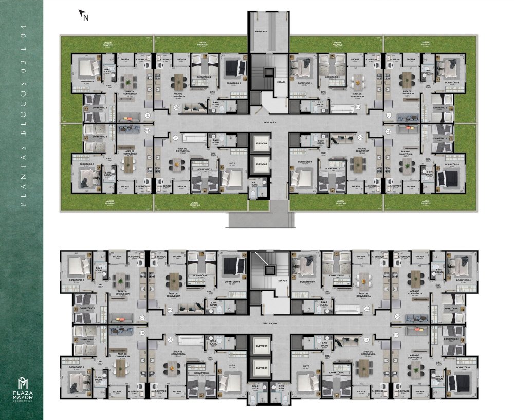 * Apartamentos de 2 dormitórios (1 suíte)