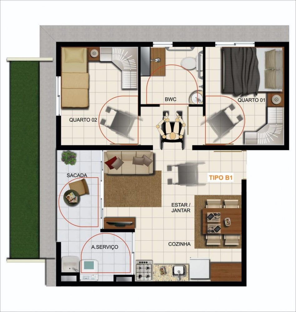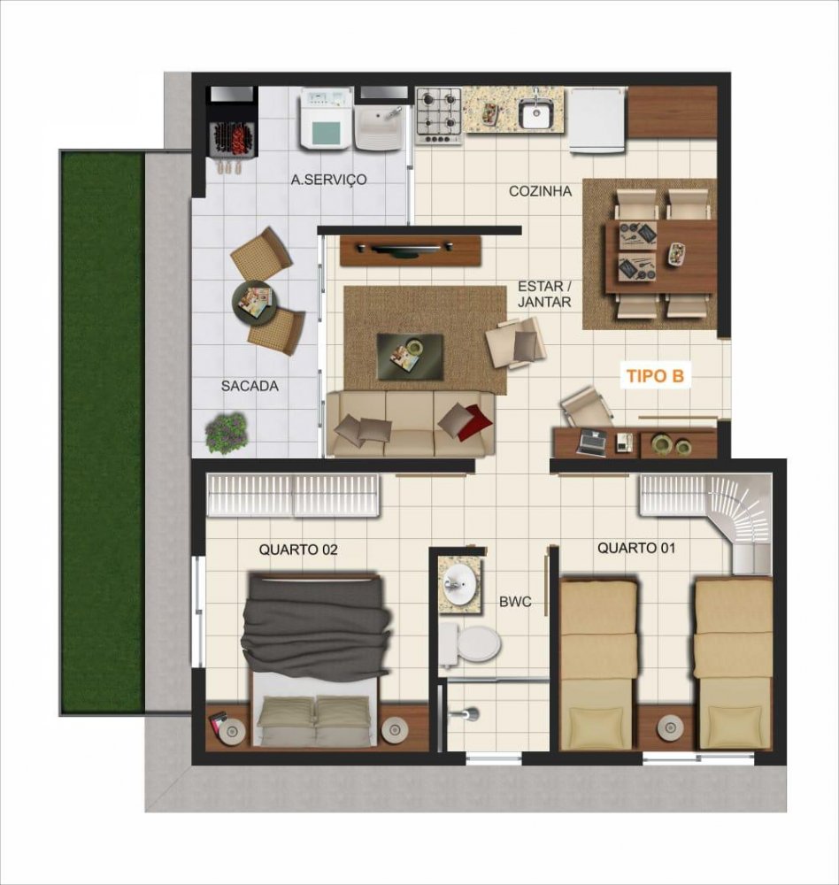 - Área Privativa: 43 m²