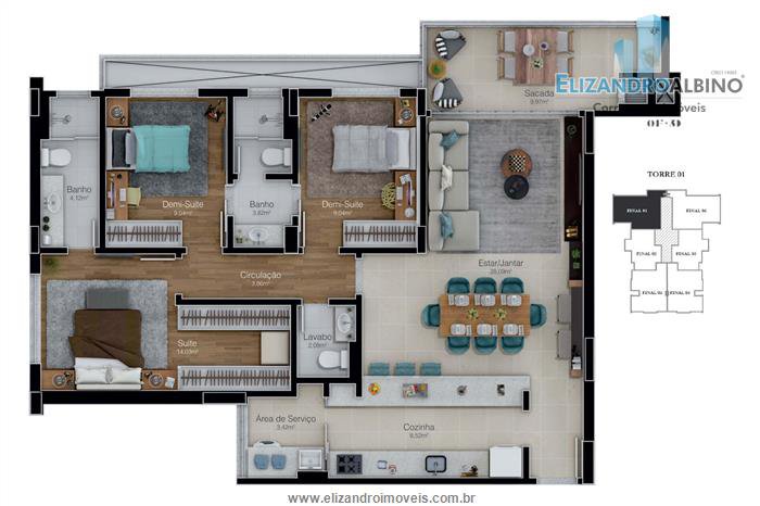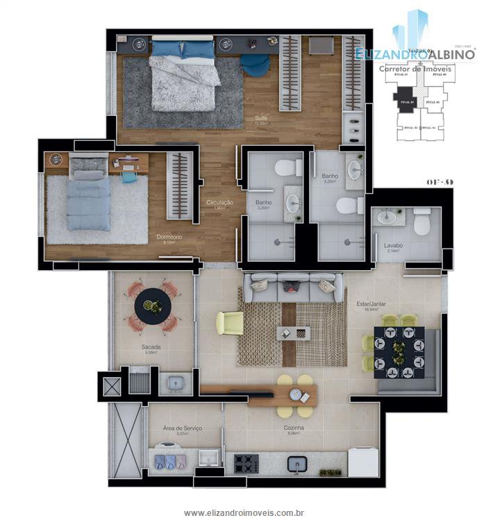 O empreendimento conta com apartamentos de 02 e 03 dormitórios (suíte),
