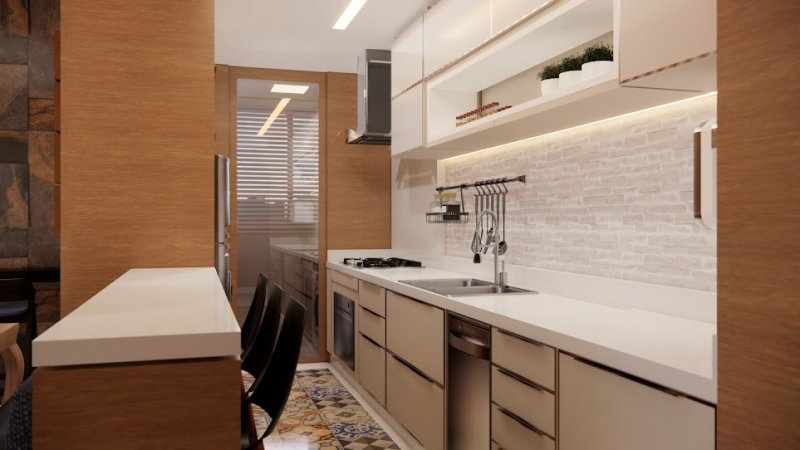 sala de estar e jantar, cozinha, bwc social, área de serviço, sacada com churrasqueira e 2 garagens.