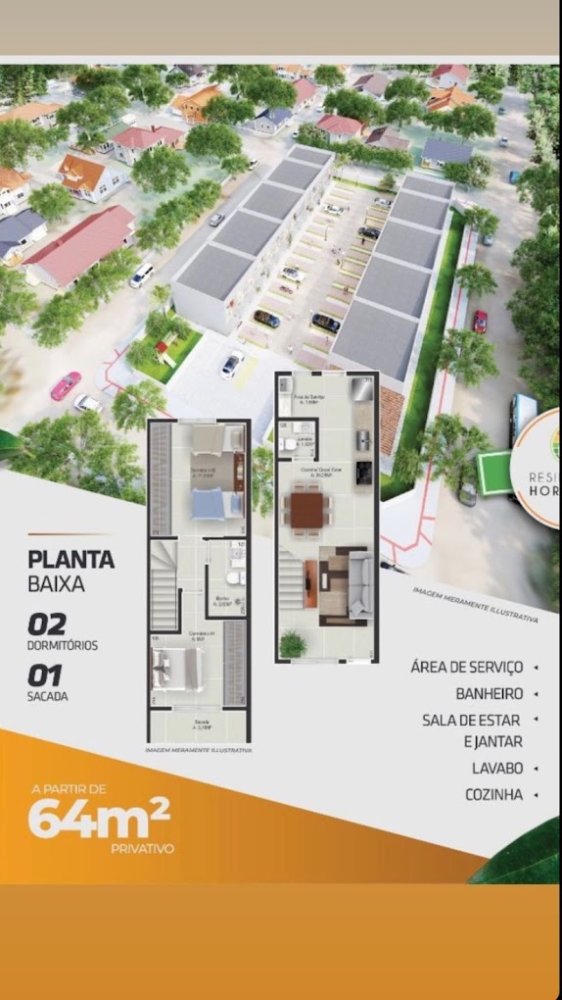 - Área Privativa: 64 m²