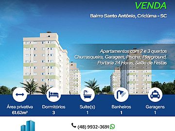 Apartamento à Venda com 3 dormitórios, sendo 1 suíte, 62m²